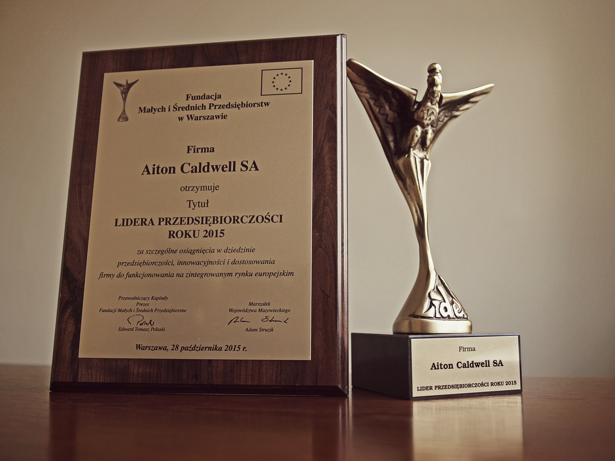 Spółka Aiton Caldwell SA notowana na New Connect została uhonorowana tytułem „Lider Przedsiębiorczości Roku 2015” w konkursie Fundacji Małych i Średnich Przedsiębiorstw w Warszawie.