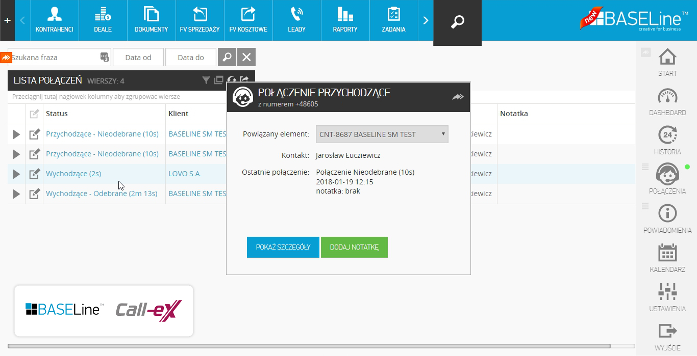 Baseline to system CRM zintegrowany z systemami VoIP Datera.